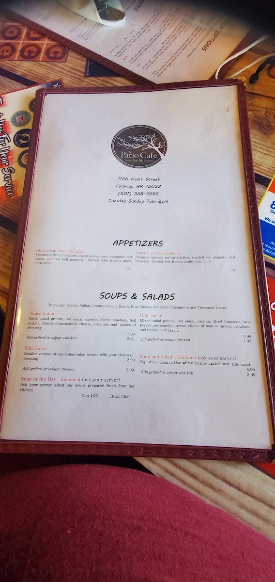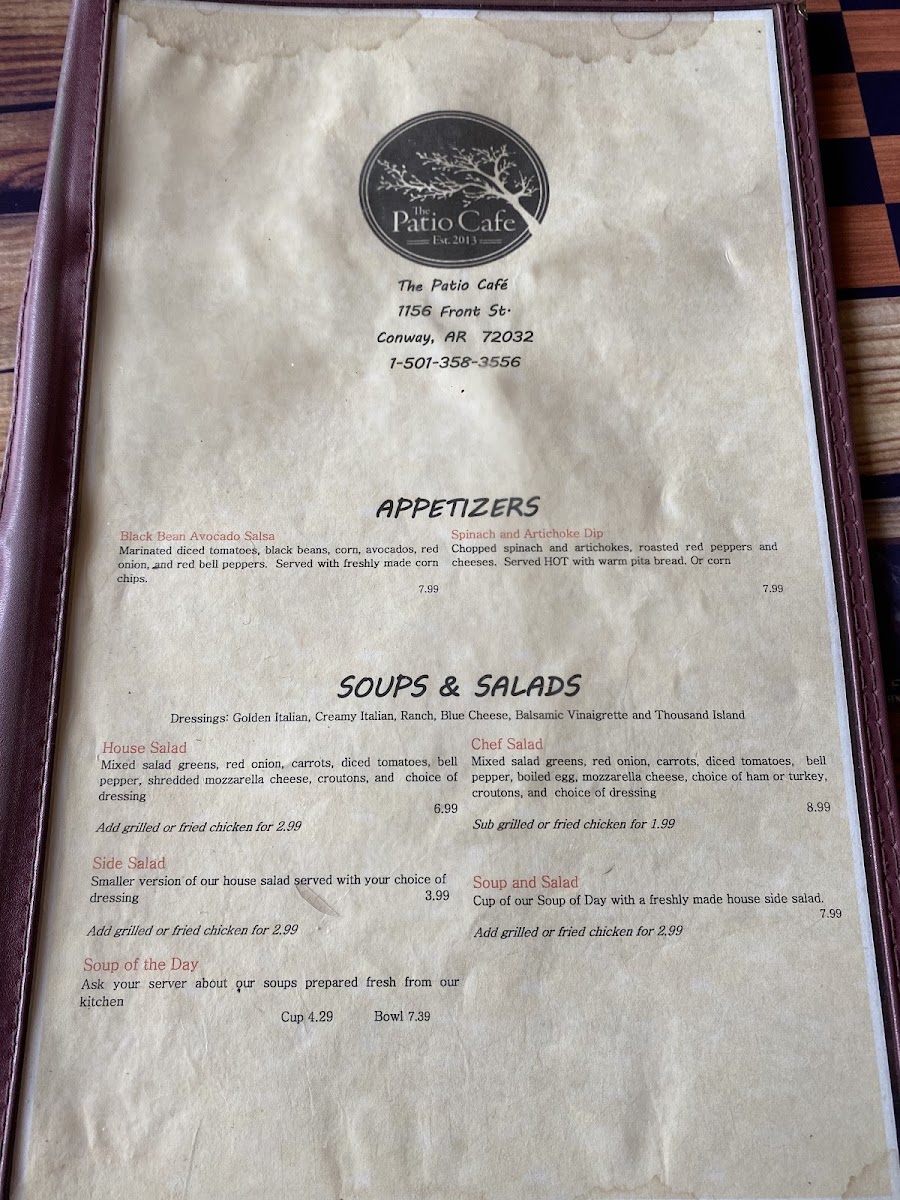 Welcome to The Patio Café, a charming gem nestled at 1156 Front St in Conway, AR. This delightful café prides itself on a menu that caters to all tastes, serving breakfast and lunch all day. Guests can indulge in mouthwatering wraps like the Philly Cheese Steak Wrap, featuring tender sirloin and grilled vegetables, or try "The Patio Wrap" with its flavorful housemade aioli.